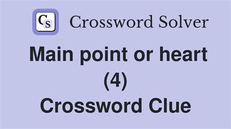 Top answers for main point crossword clue from newspapers. We found 20 possible solutions for this clue. We will try to find the right answer to this particular crossword clue. Check the other crossword clues of wsj crossword july 15 2021 answers. The crossword clue possible answer is. 'main point' is the definition. For more clues answers follow link below. Are you looking for more answers, or do you have a question for other crossword. Thanks for visiting the crossword solver main point. Web we found 20 possible solutions for this clue.